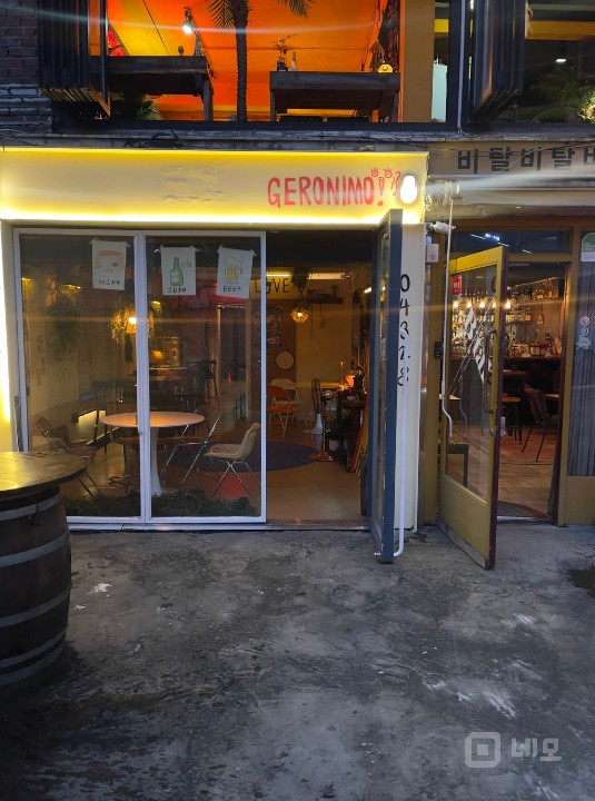 해방촌 오거리 30초거리 마을버스,시내버스 정류장 30초거리 출입문쪽 폴딩도어 이며 날좋을때는 앞에 테이블 세팅가능 실내 화장실 바로앞 공영주차장이있습니다.